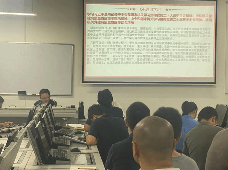 第一项议程,由主持人程凡同志带领全体党员重温入党誓词、诵读党章(节选)。随后由郑科旺同志领学,带领大家学习党的二十届三中全会精神和习近平总书记重要讲话和指示批示精神、学习贯彻中共湖北省委十二届七次全体会议精神,由屈婷同志领学,带领大家学习不合格党员组织处理办法。副院长颜永斌同志领学《普通高等学校本科教育教学审核评估(2021-2025 年)工作指南》和学校《关于印发<太阳网集团tcy8722本科教育教学审核评估迎评促建工作方案>的通知》。最后,程凡同志向支部全体党员传达学习学校2024年秋季学期第一次中层干部会议内容,号召全体党员教师积极开展“新学期 新担当”新作为,大力弘扬教育家精神。同时做好2024年第三季度党组织和党员信息统计工作。