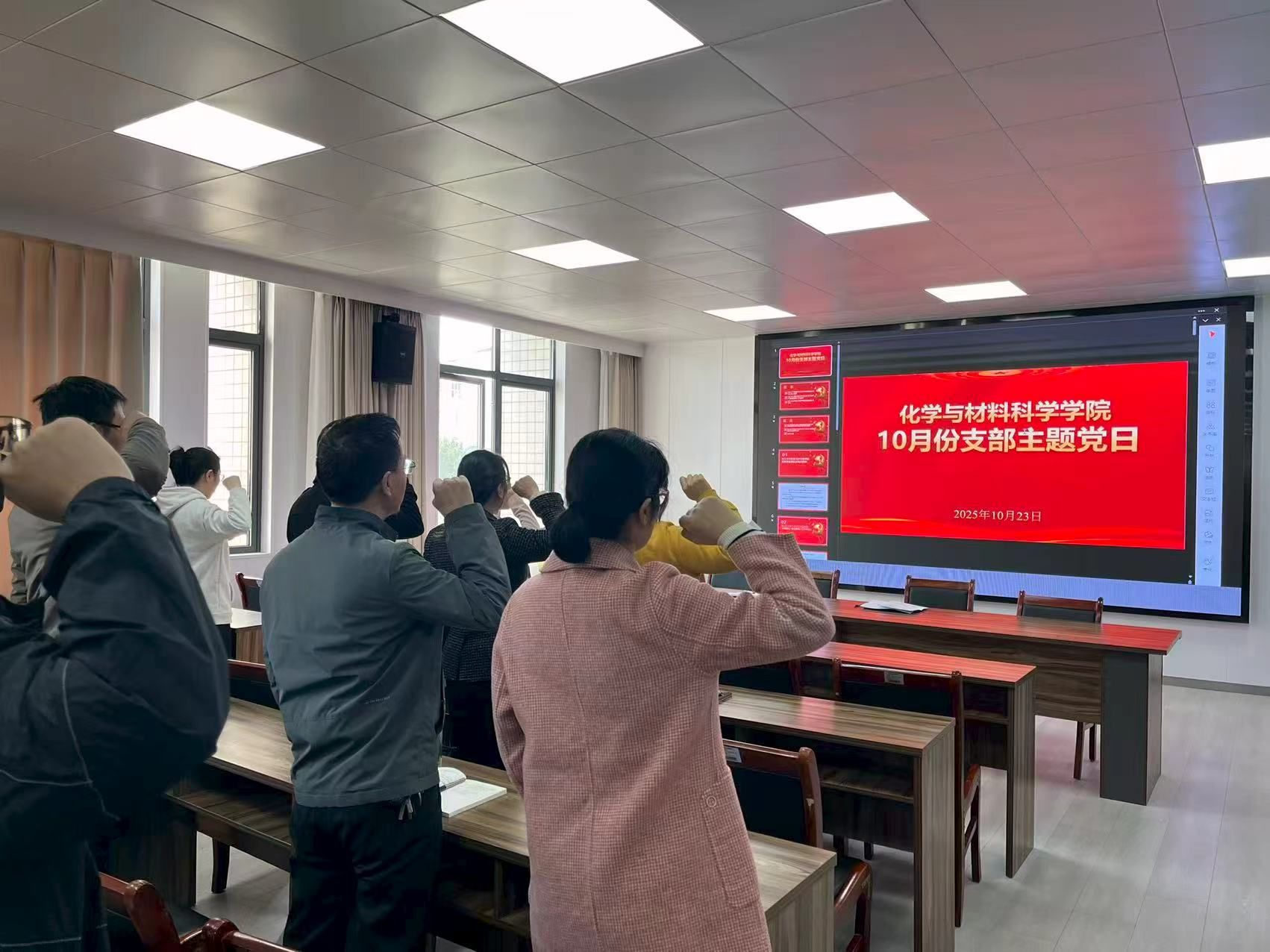 精神传承与价值引领模块中,党员们通过观看历史纪录片《伟大胜利》、重温入党誓词,从抗战精神中汲取奋进力量,明确要教育引导青年学子铭记历史、珍爱和平,培养具有家国情怀的新时代科学家;同时,通过学习习近平总书记关于妇女儿童和妇联工作的重要论述,邀请学院女教授代表分享经验,强调女性科技工作者在科技创新和人才培养中的半边天作用。