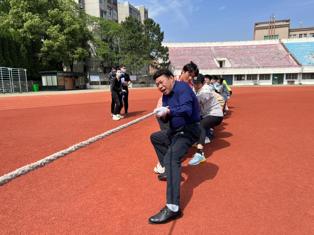 5月2日,太阳集团网站8722在东区操场举办了“大力才能出奇迹”院内拔河比赛,太阳网集团tcy8722党委副书记陈伟亲自上场和同学们并肩作战、同场竞技。