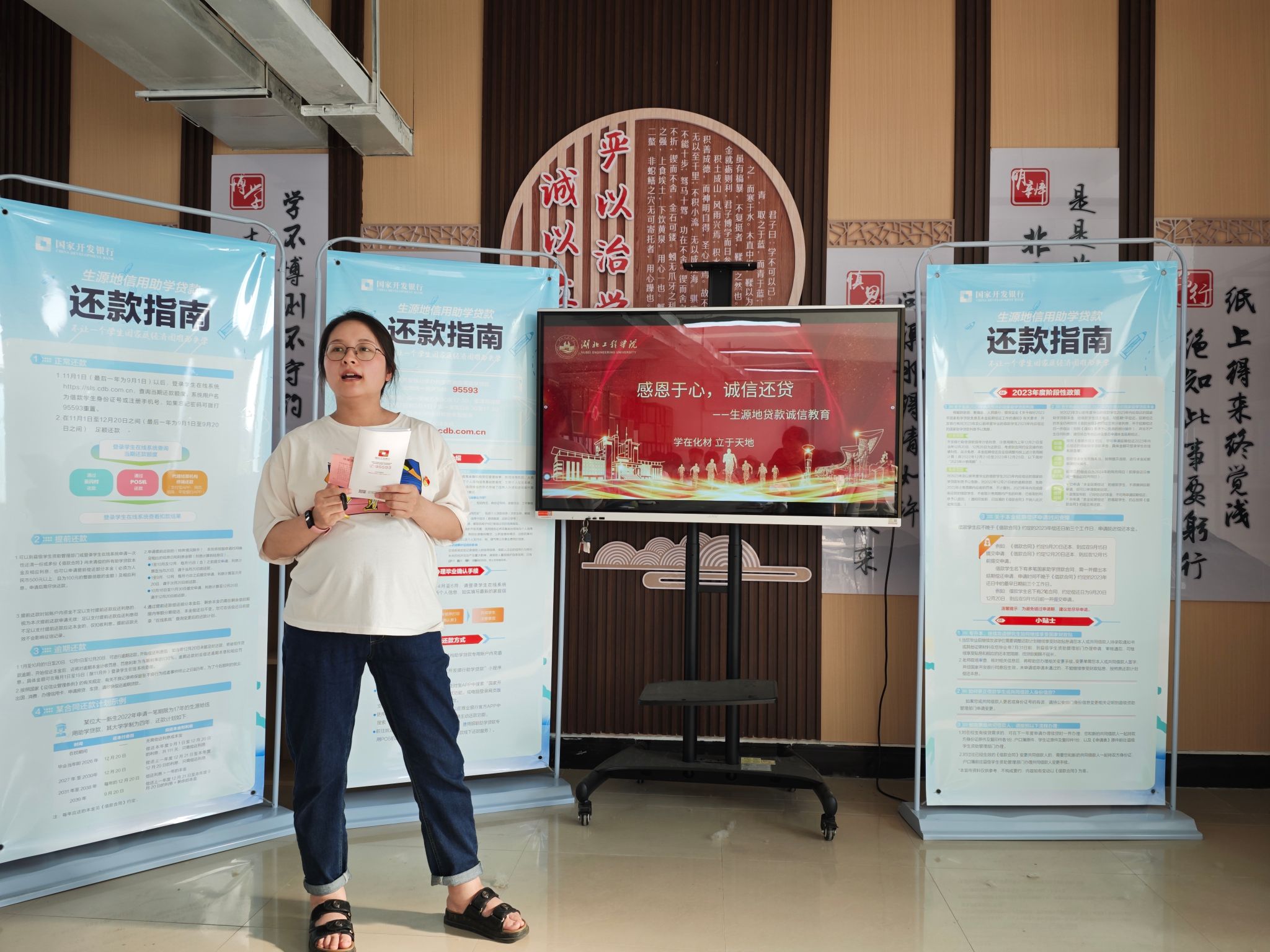 刘谢香详细地讲解了什么是生源地贷款、如何申请生源地贷款、贷款注意事项和如何还款,并提醒学生要感恩国家和社会各界的关爱,树立远大理想,一定要按约还贷,尤其是毕业生,要注重建立起良好的个人信用,强调要“感恩于心,诚信还贷”。