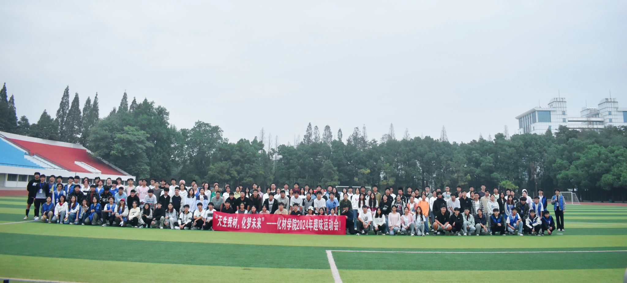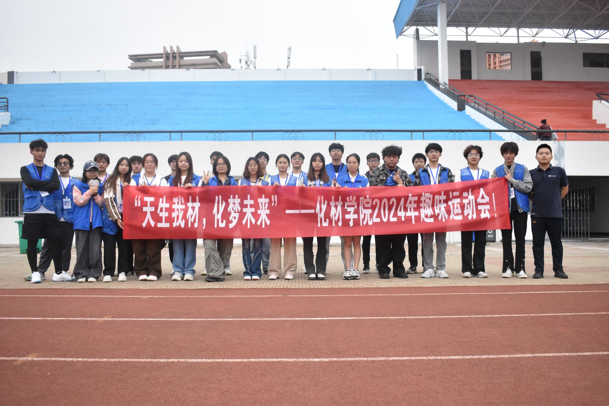 10月13日上午,化材学院在东区操场举办“天生我材,化梦未来”2024年秋季趣味运动会,活动吸引了来自22个班级的53个团体参加,合计300余人走向操场。