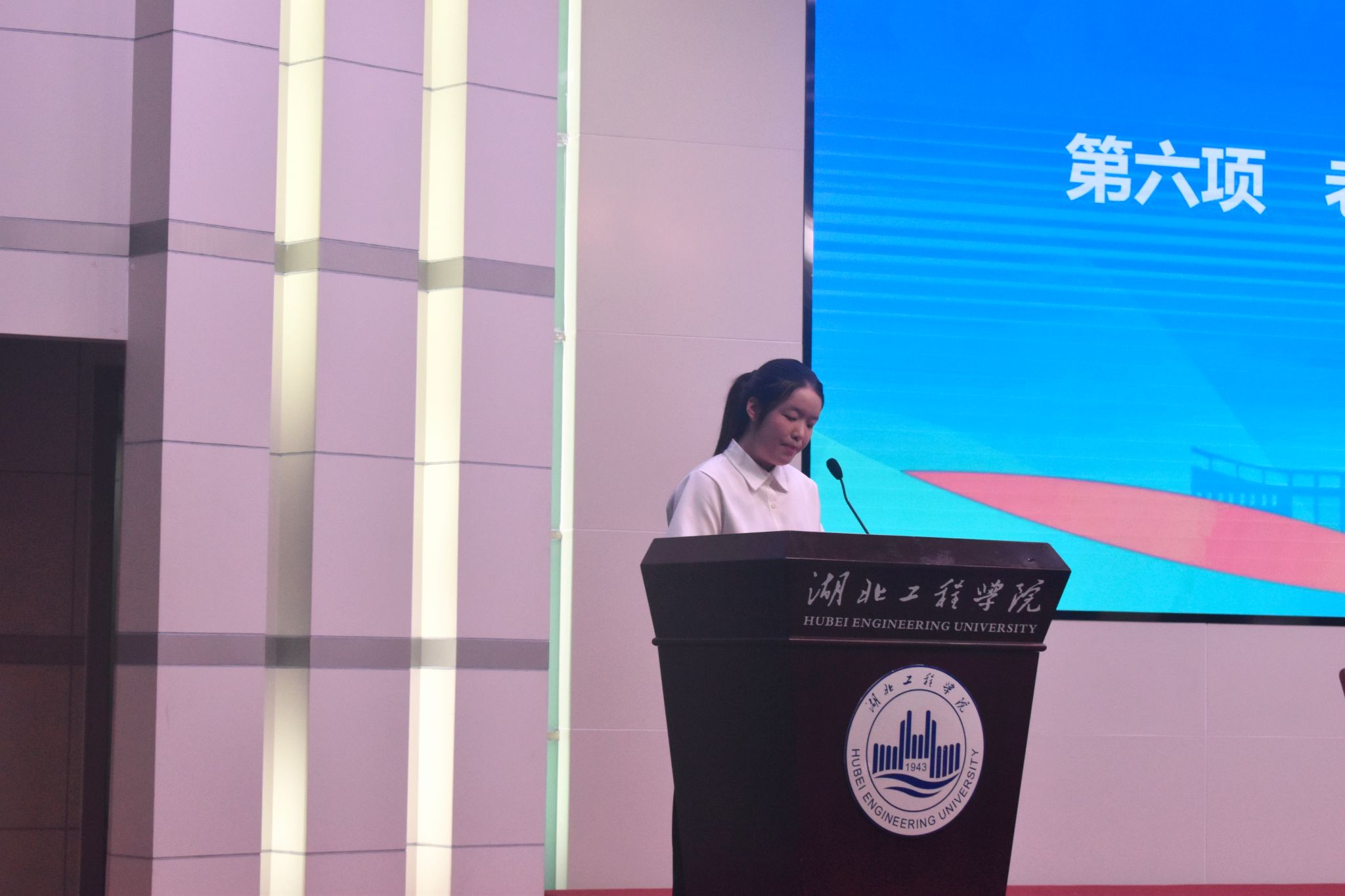 2024级化学专业学生张余鑫代表新生发言。她分享了来校报到后对湖工的真切感受以及对未来的规划与思考。她倡议2024级新生,一是作为新时代代大学生,应怀坦荡襟怀、正直做人、正派做事、诚实求学,踏实走好求学之路; 二要坚定信念,勇往直前,找到生活中的“催化剂”,翻越看似难以逾越的山。最后她呼吁,我们要扛起时代大旗,争做“高扬旗帜、卓越领航”的化材人!