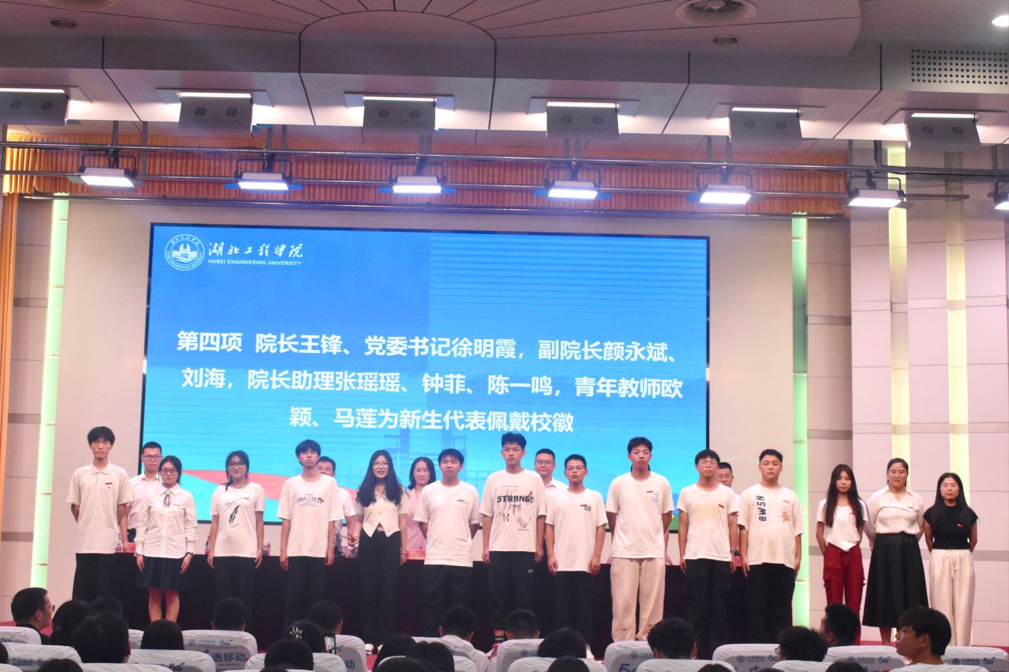 典礼上学院领导班子、院长助理、班主任代表共同为新生代表佩戴校徽。从戴上校徽的这一刻开始,每个同学正式成为太阳网集团tcy8722的一员:共有湖工人的身份,共担湖工人的使命。