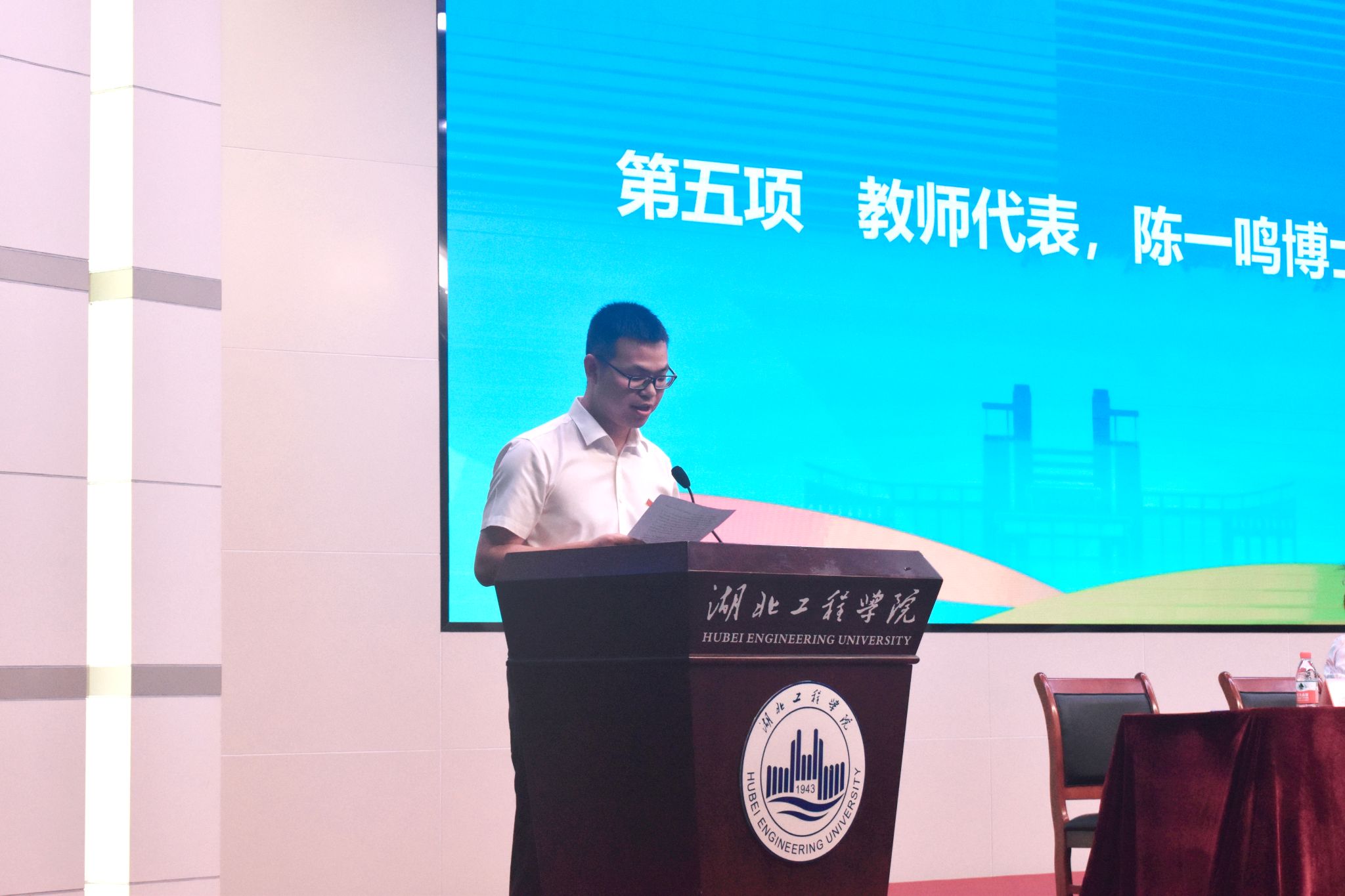 青年教师陈一鸣代表学院教师发言,他寄语新生“越努力、越幸运”。一是希望大家保持初心、继续刻苦学习,锻炼综合素养,为四年后迈向社会或升学做准备;二是希望大家参与锻炼,保持健康身体,锤炼坚强意志;三是鼓励大家勇于尝试,锻炼自己的人际交往能力、抗压受挫能力,拓展专业知识与技能,综合全面发展。