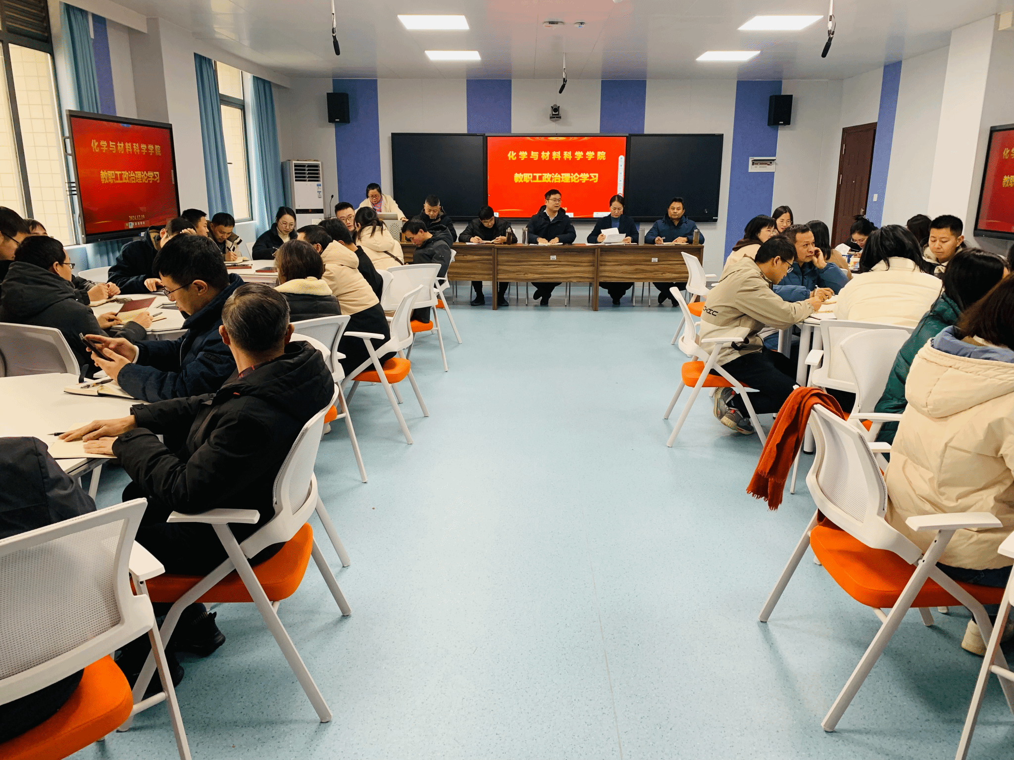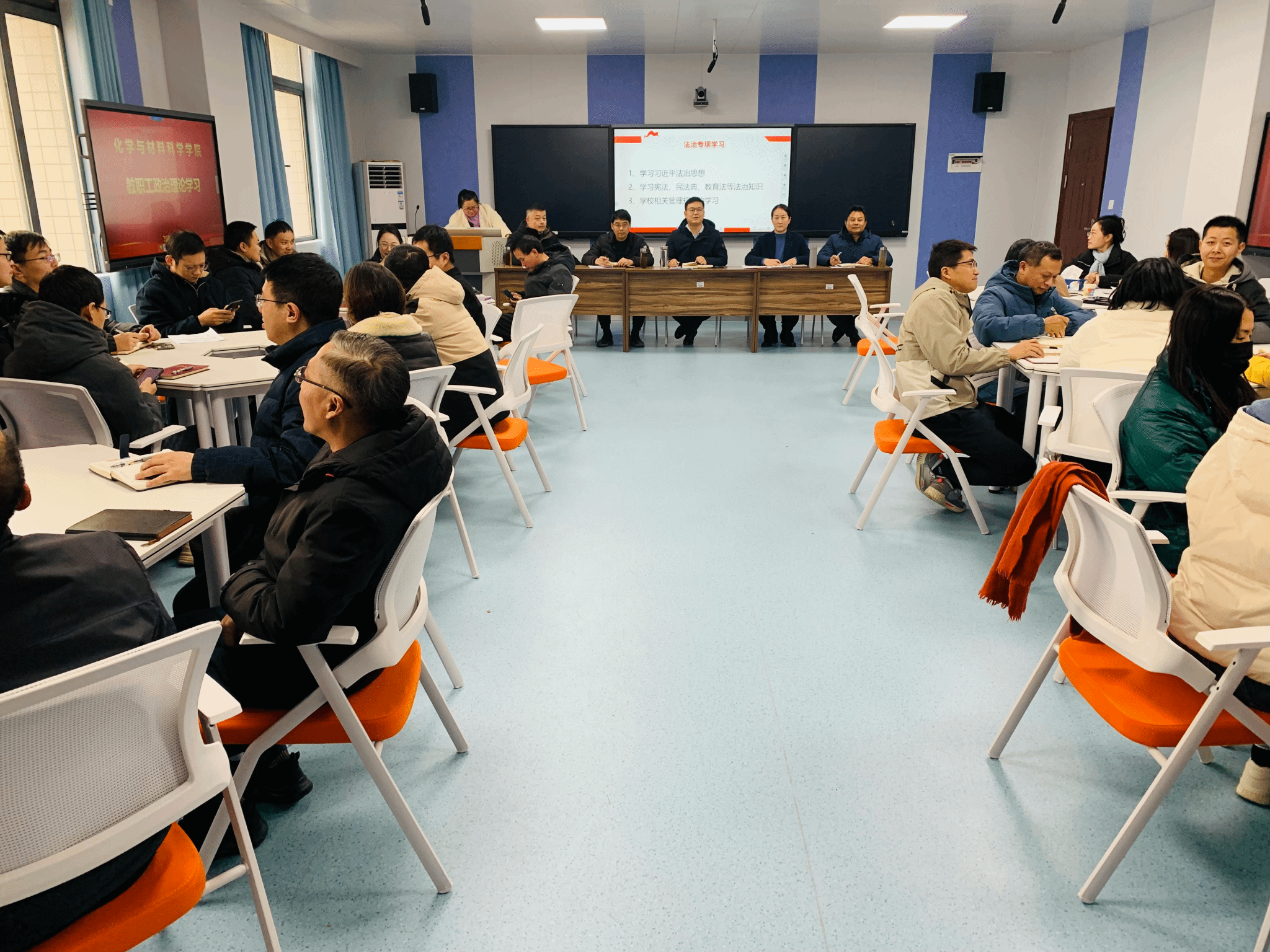 12月19日下午,太阳集团网站8722全体教工在化材楼330开展法治专项学习和党的宗教、民族政策学习。