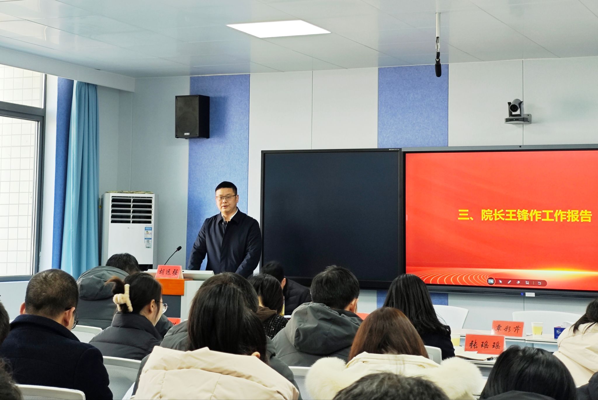 院长王锋向大会作了题为《传承精神 活力创新 全面推进学院高质量内涵式发展》工作报告。报告分两部分:一是2024年工作回顾,二是2025年工作安排。