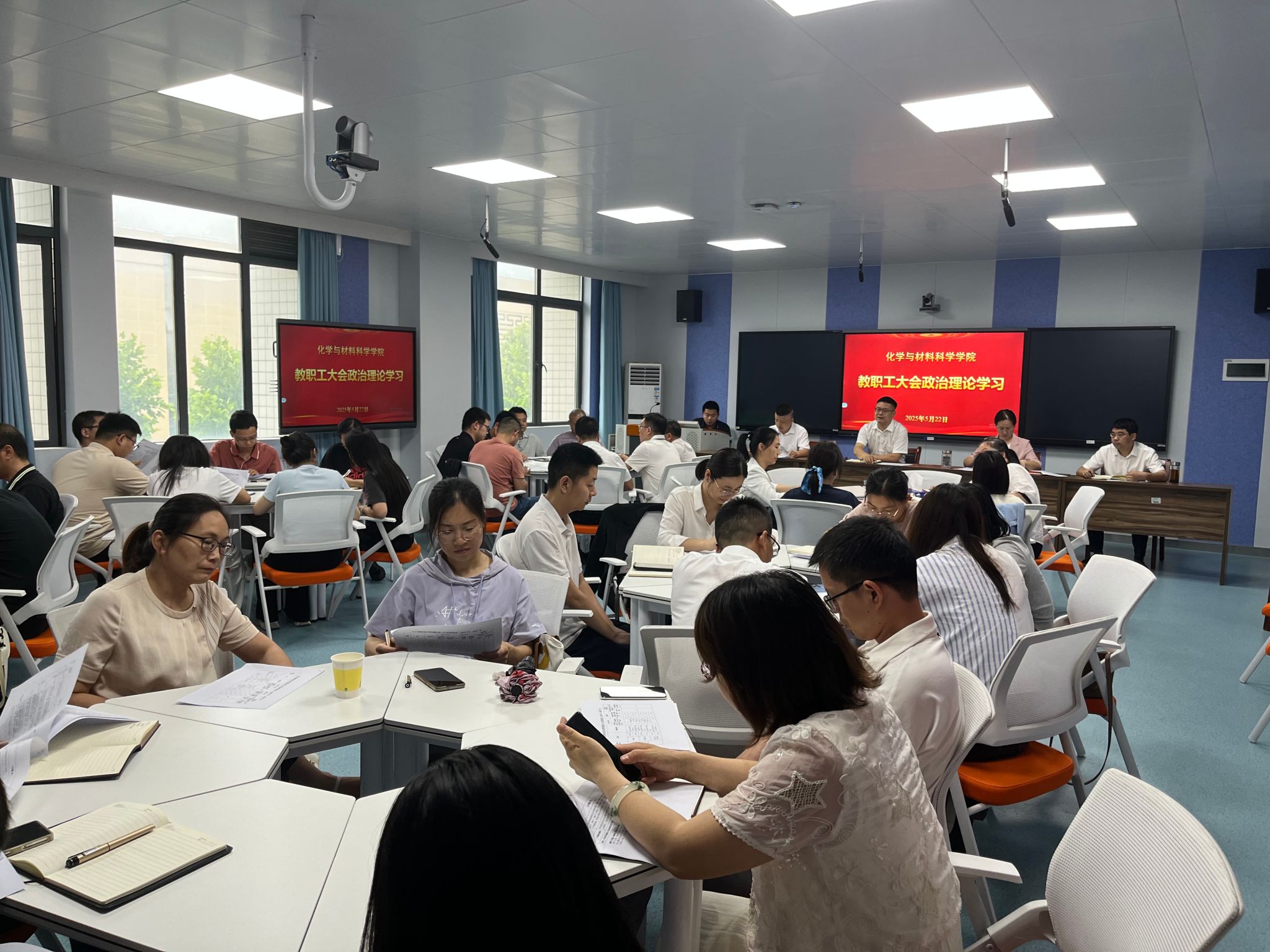 2025 年 5 月 22 日,太阳集团网站8722召开教职工大会,以政治理论学习为引领,紧密结合学院中心工作展开全面部署。学院领导班子及全体教职工参会,在传达上级精神、强化纪律教育的基础上,针对教学管理、实验室安全、学生工作及考核机制等关键领域提出具体要求,为学院近期工作明确方向。